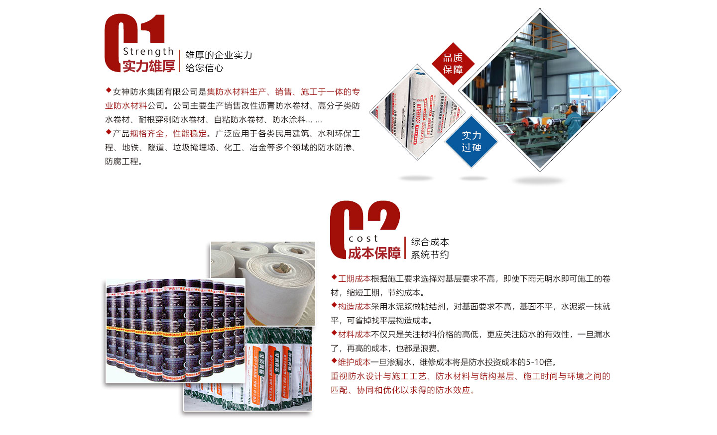 安徽女神建材科技集團有限公司是集防水材料研發(fā)、生產、銷售、施工為一體的綜合性防水材料集團公司。我公司旗下有多條大型一次成型生產線:SBS改性瀝青防水卷材,DTM聚酯復合高分子防水卷材,非瀝青基高分子防水卷材,PVC,TPO高分子防水卷材等生產線。我公司秉承“創(chuàng)新發(fā)展、實惠用戶”為宗旨,確保生產材料基礎上推出“共享生產廠家”,為開發(fā)商、建筑商節(jié)約成本為理念,新理念受到用戶企業(yè)集采時一致好評和認可。在互聯網時代,我公司將以互聯網“共享”為發(fā)展理念,為開發(fā)商、建筑商、防水企業(yè)提供的產品,真正讓用戶企業(yè)達到巨大...